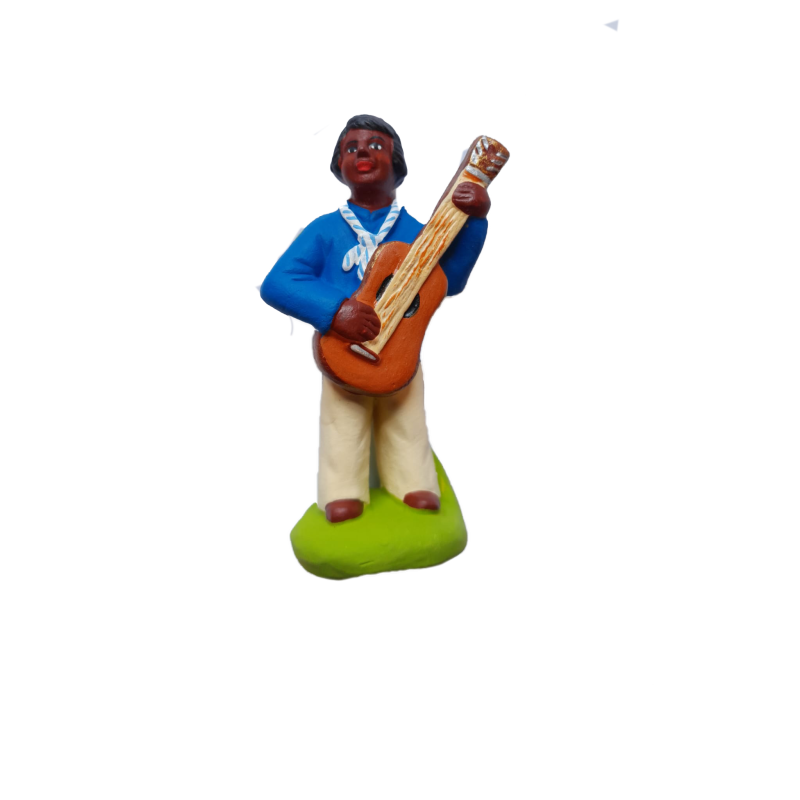 Une belle idée de cadeau pour enrichir votre crèche ou votre collection : ce santon représente un musicien jouant de la guitare, apportant une touche de diversité et de chaleur à votre scène.