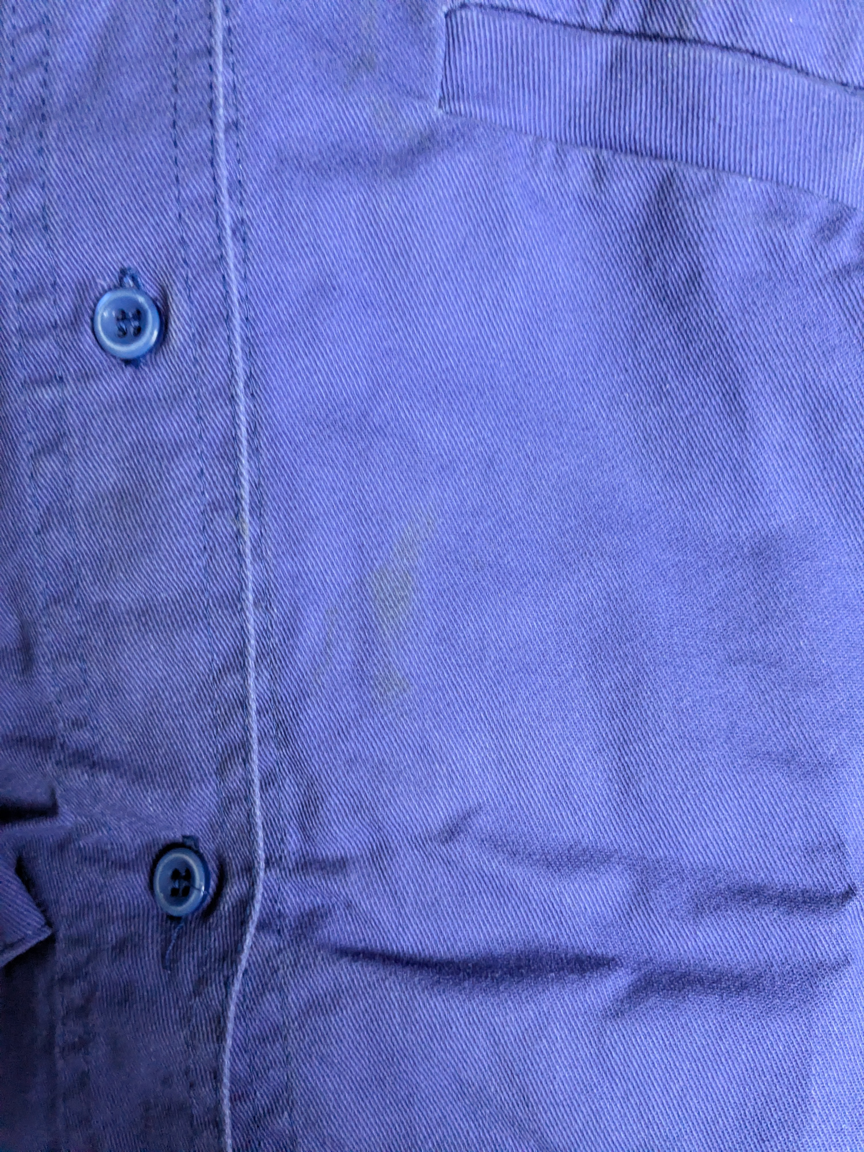 Elle a une petite tâche près de la poche droite, et un trou de l'insigne de TECH sur le rebord de la poche de cœur.